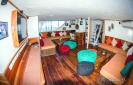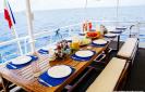 Le pont arrière est spacieux, il permet de gréer son matériel et de s'équiper confortablement, sans piétiner les affaires de son binome. Des niches individuelles permettent de stocker votre équipement. L'accès à la mise à l'eau se fait sans encombre grâce à l'aide de l'équipage extrêmement prévenant. On s'immerge en saut droit depuis l'arrière du bateau, ou depuis l'une des deux barges polyester de 8 mètres, qui font office d'annexes. De retour à bord, une serviette chaude est remise à chaque plongeur. Il est possible de se rincer grâce à une douche extérieure, et de déséquiper son matériel de photo / vidéo sur une table prévue à cet effet. En fin de semaine, le matériel peut être rincé grâce à un bac situé sur le pont arrière.