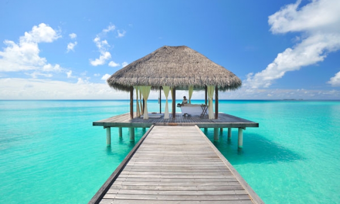 Kuramathi, les Maldives, naturellement ! Cette très belle île hôtel est située sur l'atoll de Rasdhoo, au nord-est du fameux Ari Atoll. On atteint l'établissement par speeboat (90 minutes) ou en 20 minutes d'hydravion. Kuramathi est un séjour de choix pour les amoureux, et pour les familles. On y trouve 6 bars, répartis ça et là sur ce petit ilôt de moins de 2 kilomètres de long. Pour varier les plaisirs culinaires, sept restaurants proposent des plats variés, de la cuisine locale et internationale. Un Spa procure des soins et des massages délicieux, pendant que les enfants profitent du kids club et de ses nombreuses animations.