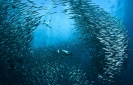 Connaissez-vous le Sardine Run ? Cet événement, qui se produit en Afrique du Sud chaque année, est un must-do dans une vie de plongeur. Le Sardine Run, c'est ni plus, ni moins la plus grande migration animale de la planète. Par l'effet des courants, une eau fraîche, chargée de plancton, frappe les côtes sud africaines, du sud de Port Elizabeth dans la direction de Durban. Ce courant austral, dit de « Benguela », attire des milliers de sardines (Sardinops Sagax). Et qui dit profusion de sardines, dit prédateurs, qui suivent ces rassemblements, baptisés les « Baitballs » dans l'espoir de profiter d'une part du festin. La quantité et la diversité d'espèces que l'on peut observer pendant le Sardin Run est purement époustouflante : requin taureau, cuivre, sombre, bordés, dauphins par milliers, qu'il s'agisse de dauphins commun ou à long bec, phoques, baleines à bosse, rorquals de Minke et de Bryde, pingouins, et même orques. Le spectacle n'est pas qu'aquatique. Depuis les airs, des milliers de fous du cap fondent sur leurs proies depuis les airs, espérant décrocher leur part de butin.