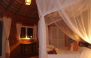 Le Bush Camp est quant à lui composé de 5 tentes dômes de 3x3m montées sur terrasses bois, dont 2 vues mer, les autres étant disséminées dans la petite forêt. Une salle de bain à ciel ouvert et douche vue mer (une pour hommes et une seconde pour femmes).