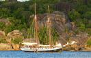 Jour 2 / samedi : Accueil à l'aéroport de Mahé et transfert vers Port Victoria, Inter-Island Quay. Embarquement à partir de 10h30. Accueil à bord par le Capitaine, présentation de l’équipage, briefing de sécurité puis installation en cabines. Départ à midi en direction du Nord de Mahé. Navigation, coucher de soleil dans la baie Beau Vallon. Mouillage pour la nuit. Barbecue créole de bienvenue et première nuit à bord.