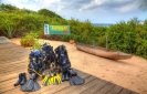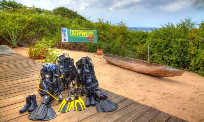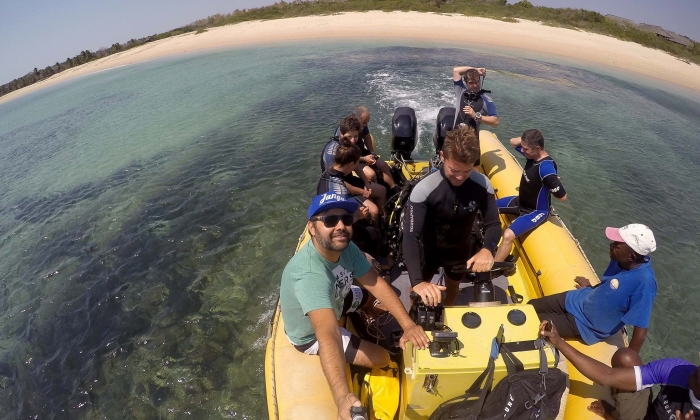 Un zodiac semi rigide et un dhow a été spécialement conçus pour se rendre sur les sites de plongées autres que ceux accessibles depuis la plage. Il est équipé de radio, GPS et nécessaire d’urgence. Des instructeurs expérimentés sont disponibles pour répondre aux exigences de tous les plongeurs. On y parle l’anglais et le portugais.