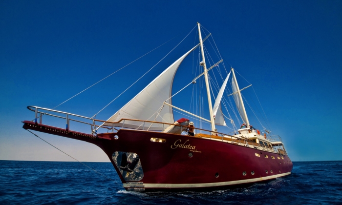 Galatea est une goélette Turque de 30 mètres, construite en 1987 et entièrement rénovée dans son pays d'origine entre 2012 et 2013. Ses dimensions réduites permettent des croisières intimes voire privatisées, puisque Galatea accueille au total 12 passagers. La goélette compte 6 cabines doubles (grands lits) climatisées dont 1 cabine Master. Chacune dispose de sa propre salle d'eau.