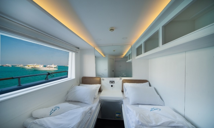Lucy est un motor-yacht tout confort de 37 mètres. Le navire compte huit cabines situées sur le pont inférieur, 2 autres situées sur le pont principal, ainsi que 2 single, pour un maximum de 22 passagers par croisière. Chaque chambre dispose de l'air conditionné, d'une salle d'eau / WC, ainsi que d'un mini bar. Dans les parties communes, on trouve un grand téléviseur, pour se détendre à la fraîche ou regarder ses photos / vidéos après la plongée. Les repas sont pris dans une vaste salle à manger à la décoration contemporaine. Le sun deck permet aux amateurs de farniente de profiter du soleil (attention toutefois, Djibouti est l'un des lieux habités les plus chauds de la planète!)