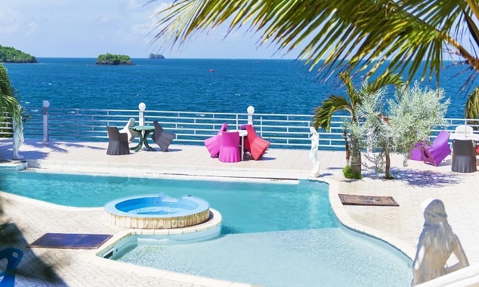 De retour à la surface, vous apprécierez la localisation de votre hôtel : Le Rocher. Celui-ci offre une vue panoramique sur le lagon, que ce soit de la piscine ou du restaurant. Le soir, vous pourrez y admirer un coucher du soleil majestueux.