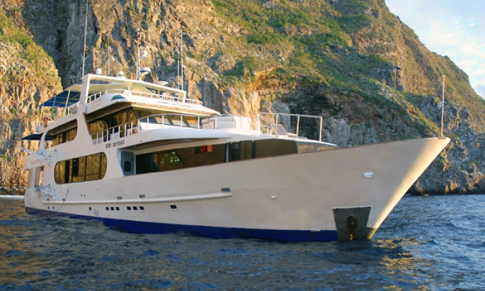Les navires de croisière de la flotte Aggressor sont tous de grand standing. On trouve les bateaux de ce croisiériste Américain sur les plus beaux spots du monde, il est donc tout à fait logique de les voir sillonner les eaux de l'archipel des Galapagos.