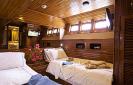 A bord de ces motor yachts "d'expédition", on trouve dans les communs un carré composé d'un salon (avec accès internet!) et d'une salle à manger, un sundeck avec bar et barbecue. Le service de restauration est varié. Il comprend des plats cuisinés à bord à base de produits frais locaux, accompagnés de boissons incluses dans votre forfait (eau, thé, café, jus de fruits, sodas, sélection de bières et de vins). Votre bateau comporte 8 cabines. La moitié sont des «Master Suites» doubles ou twin, situées sur le pont supérieur. Les 4 autres sont des "deluxe" avec une literie twin. Toutes les cabines du bateau disposent de l'air conditionné, d'une télévision à écran plat avec lecteur de DVD, d'un lecteur CD, d'un coffre fort et d'une salle d'eau WC privative avec sèche cheveux. Prises 110v, prévoir un adaptateur.