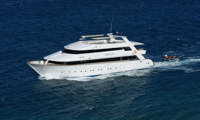 Exocet est un motor yacht haut de gamme, né de l'imagination de ses propriétaires et de leurs vingt ans d'expérience de la croisière plongée en Mer Rouge. Exocet a été conçu et pensé pour offrir un maximum de confort et de convivialité aux plongeurs, qu'ils soient passionnés ou occasionnels.