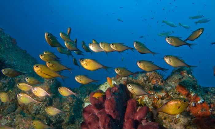 L'itinéraire de la croisière n'est pas fixe, il est adapté toutes les semaines en fonction des conditions météo. A proximité de Nassau, vous plongerez sur des sites tels que Lost Blue Hole où vous observerez des bancs de poissons tabac, des requins nourrisse, et au printemps, un grand banc de requins nez noir que vous pourrez deviner dans les profondeurs du trou. A Periwinkle Reef, vous vous retrouverez entouré de sergents majors et de poissons anges. Dans les Exumas, vous découvrirez les eaux poissonneuses et peuplées de carangues et de requins de récif de Amberjack Reef. Les amateurs d'épaves auront leur moment, en la présence de la très belle Austin Smith Wreck. Pillar Wall est un des très beaux tombants de la zone, n'essayez pas de voir le fond, il est à plus de 1000 mètres. Sur Whale Tail Wall , un autre tombant, vous aurez l'occasion de voir de gros poissons perroquet, des raies aigles ainsi que la très rare raie torpille des caraïbes. Un des sites mythiques de la destination est The Washing Machine. Ici, il n'est pas question de faune, mais d'un courant un peu fou qui vous balancera comme un fétu de paille. Rigolade assurée ! A Whale Shark Wall, pensez à regarder dans le bleu (comme sur tous les tombants d'ailleurs) vous pourriez voir passer un requin baleine. Vers Southwest Eleuthera un nouveau Blue Hole vous attend Jake's Hole, ainsi que de beaux récifs et des grottes de corail. Partout dans la zone, la topographie est recouverte d'éponges de toutes formes et de toutes les couleurs. Elles tiennent compagnie à de beaux coraux durs et mous, érigés sur des esplanades de sable blanc.