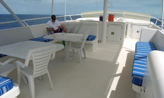 Les communs comprennent un flydeck avec un grand nombre de chaises longues, un dive deck où chaque plongeur dispose de niches individuelles où stocker son équipement. A l'intérieur, dans le carré à l'étage, on trouve un salon avec une télévision, un lecteur de DVD, ainsi qu'une chaîne Hifi. La salle à manger elle aussi, dispose d'une télévision. L'équipage propose des dîners en plein-air sous forme de barbecues, pris au bar sur le flydeck.