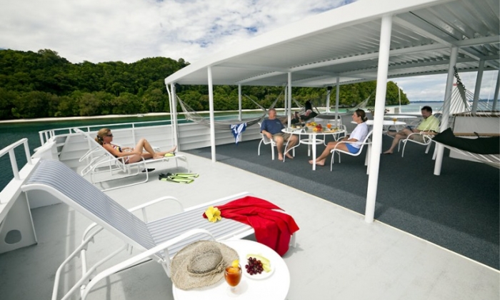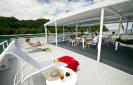 Les communs sont constitués d'un grand carré, qui fait office de salle à manger, de bar et de salon multimédia (télévision, lecteur DVD et ordinateur sont à disposition). A l'extérieur, on trouve un second bar, un espace dinatoire ombragé, et sur le fly deck, des transats pour prendre le soleil. Pour régler vos frais annexes, il est possible de payer par carte bancaire (Visa, Mastercard et Amex) à bord.