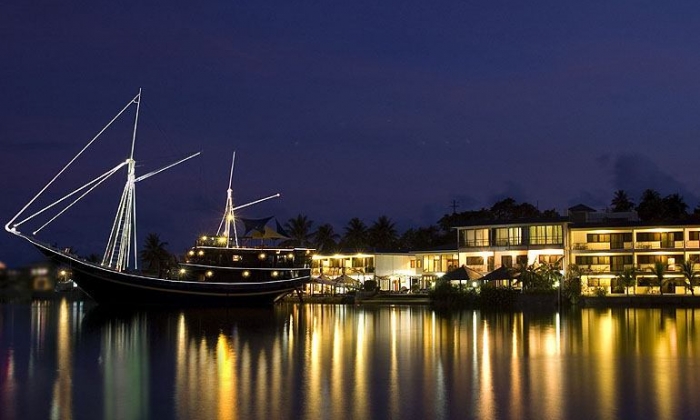 Le restaurant / bar vaut à lui seul le détour : il s'agit d'un magnifique voilier, le « Mnuw », importé d’Indonésie.