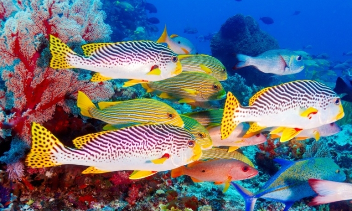 Les plongées, typique de cette zone peu fréquentée des Maldives, se font dans l'atoll, en sorties à la journée. les courants des passes attirent les prédateurs qui viennent se mêler à la faune endémique dans un ballet effréné. Du grand spectacle !