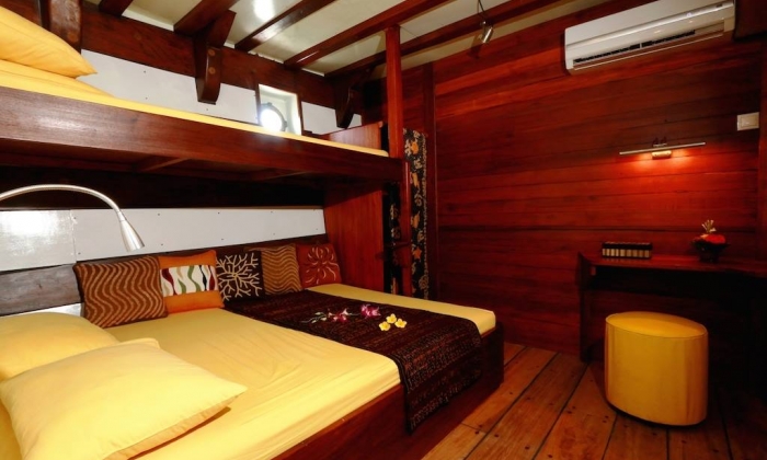Ce navire tout neuf, sorti des chantiers en 2014, est un Phinisi (un voilier indonésien classique, construit en bois de fer et en tek) - il peut recevoir 10 plongeurs, dans une ambiance conviviale. Ses 30 mètres de long offrent de vastes espaces extérieurs, ombragés ou exposés au soleil pour la bronzette.