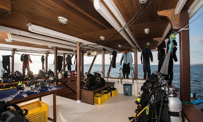 Toutes sont toutes équipées de l'air conditionné et de salles d'eau privatives avec eau froide / eau chaude. Le pont arrière est dédié à la plongée, une plateforme offre un accès facile aux 3 annexes pour vous rendre sur les sites. Une pièce est spécialement dédiée aux photographes et vidéastes pour le rangement et l’entretien de leur matériel. Un grand écran dans le salon permet de visionner photos et vidéos.
