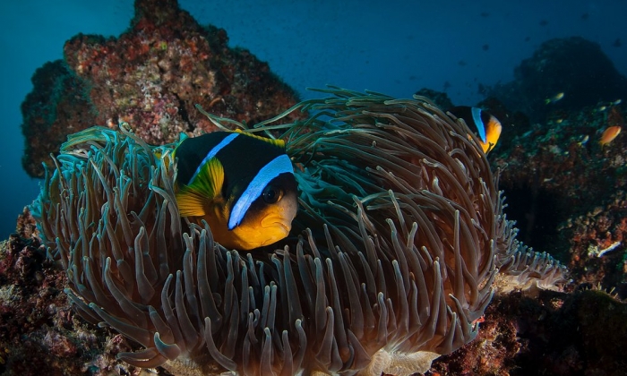 Anchor Bay est un grand récif circulaire extrêmement riche en coraux durs et mous et en éponges. Toute la faune corallienne habituelle peut y être observée en toute quiétude, avec une large présence de poissons crocodile, pierre et poissons lion. C’est l’un des rares endroits où l’on peut admirer les raies Manta « cabrioler » en surface, et où en saison, vous êtes assurés de rencontrer requins baleine, baleines à bosse et des rorquals de Bryde.