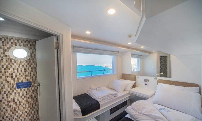 Lucy est un motor-yacht tout confort de 37 mètres. Le navire compte huit cabines situées sur le pont inférieur, 2 autres situées sur le pont principal, ainsi que 2 single, pour un maximum de 22 passagers par croisière. Chaque chambre dispose de l'air conditionné, d'une salle d'eau / WC, ainsi que d'un mini bar. Dans les parties communes, on trouve un grand téléviseur, pour se détendre à la fraîche ou regarder ses photos / vidéos après la plongée. Les repas sont pris dans une vaste salle à manger à la décoration contemporaine. Le sun deck permet aux amateurs de farniente de profiter du soleil (attention toutefois, Djibouti est l'un des lieux habités les plus chauds de la planète!)