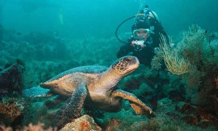 La principale attraction des Galapagos est liée à la présence de grands bancs de requins : requins marteaux, requins des Galapagos, soyeux, taureaux, pointes blanche et même requins baleine, entre juin et décembre. On rencontre également des mola molas, et parfois même des baleines, orques, dauphins et marlins. La présence de courants chauds et froids permet de croiser des espèces qui se côtoient nulle part ailleurs : ici, les mantas nagent à proximité des pingouins, les raies aigle volent parmi les cormorans et les lions de mer.