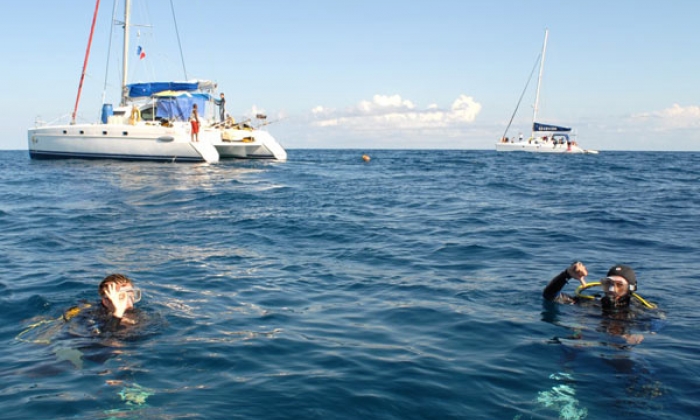 Vos deux plongées quotidiennes ont lieu soit de la plateforme arrière, soit depuis l'annexe semi-rigide du catamaran. A bord, un compresseur de 15m3 assure le gonflage à l'air.
