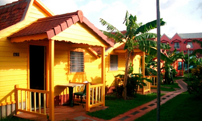 Desservi directement par la navette depuis Fort-de-France, l’hôtel Bambou, petit hôtel créole plein de charme, est situé dans la baie des Flamands, en bordure de plage. 126 bungalows de style créole et 21 chambres disséminées au cœur d’un jardin tropical, disposent d’une salle de bains privée avec sèche cheveux, coffre-fort, climatisation, téléphone. Une architecture colorée et une ambiance conviviale et familiale. Il possède une belle plage de sable. Le restaurant, sur la plage, propose une cuisine variée sous forme de buffet, allant de la cuisine classique aux spécialités créoles. Une ambiance musicale typiquement antillaise vous y attend. Vous pourrez déguster de délicieux mets martiniquais face à la baie de Fort de France.