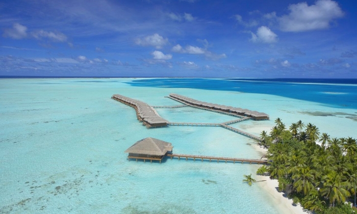 Le Medhufushi Island resort ,112 villas exotiques aux toits de chaume, lovées dans une végétation luxuriante, dont 46 sur pilotis.