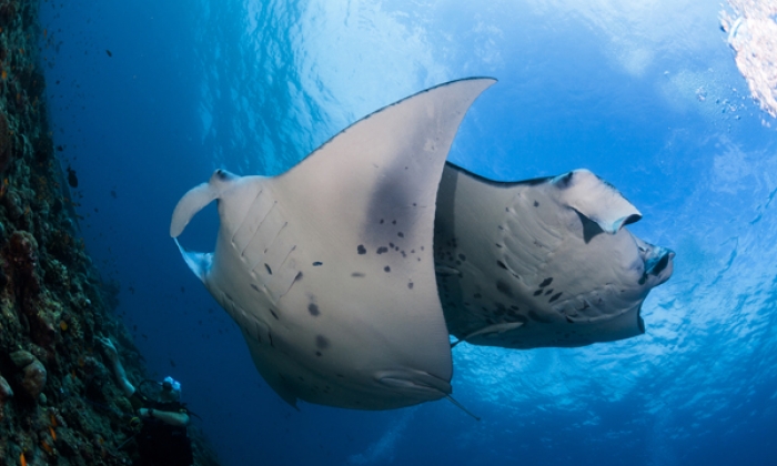 Manta Point, Wall : Le récif forme une petite péninsule avec un tombant couvert de coraux mous. A la bonne saison Il n’est pas rare de croiser des raies manta, des requins de récif, et des carangues arc en ciel.